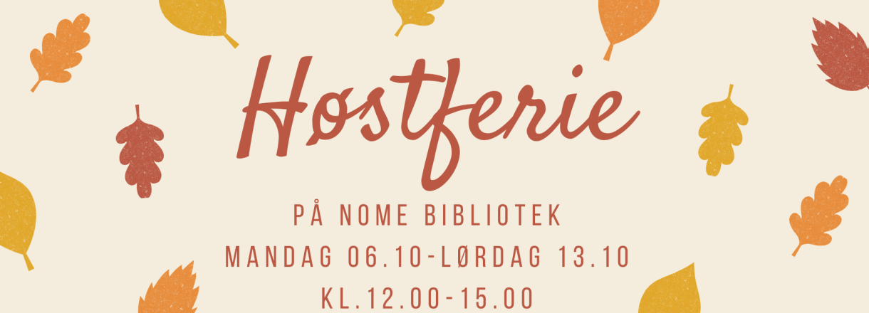 Gjennom hele høstferien vil det være aktiviteter for barn på bibliotekene i Nome.  Programmet er gratis og man behøver ikke melde seg på på forhånd.